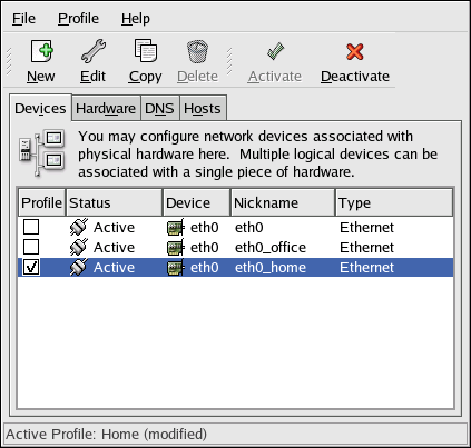 Notice that the Home profile as shown in Figure 8-17 activates the eth0_home logical device, which is associated with eth0.