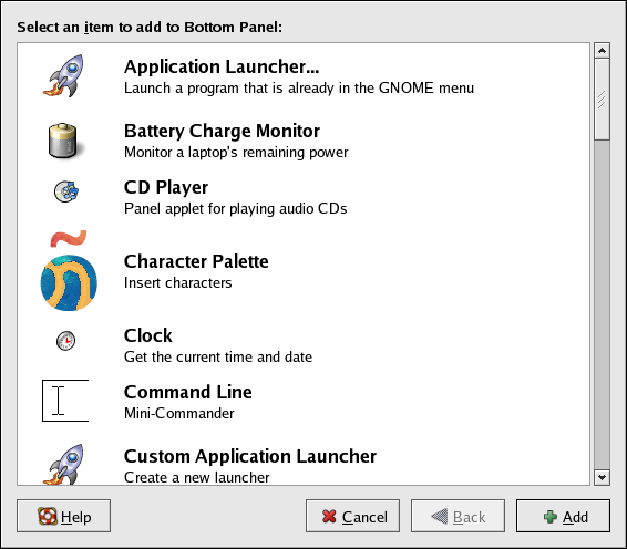 Figure 2-12. A list of applets and applications for the Panel
